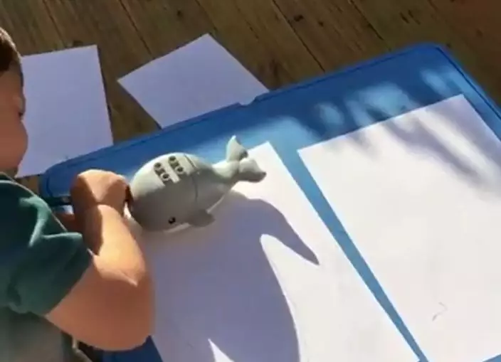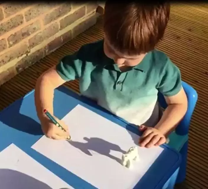 現今的小孩一般都多技旁身,不難尋找畫畫神童。外國一位小孩,喜愛於好天氣畫畫,原來他是為了畫玩具的影子。