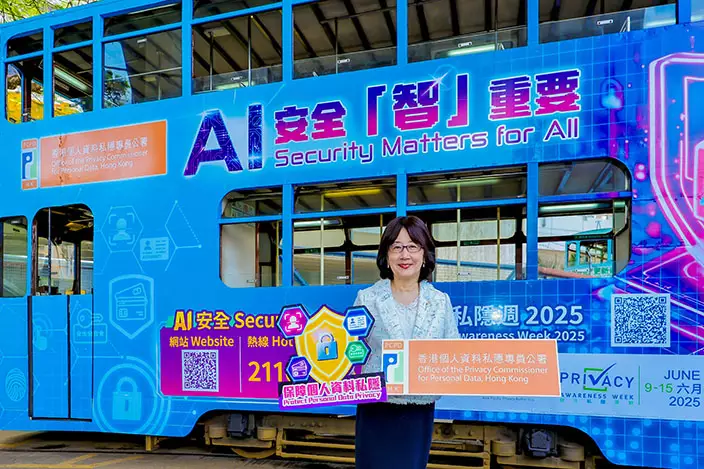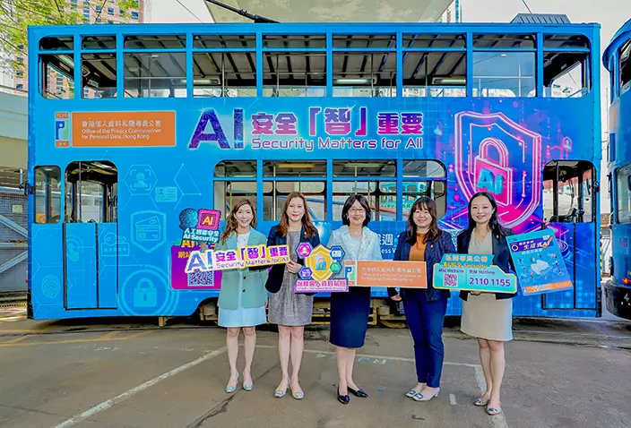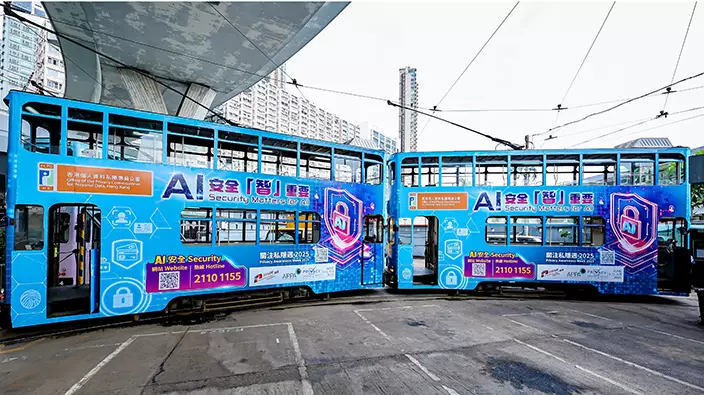 為提升市民對AI安全的認知,私隱專員公署由即日起至2025年7月4日期間,推出「AI安全『智』重要」主題電車進行巡迴宣傳。主題電車設計以象徵「AI安全」的鎖為重點,結合個人資料相關圖標,並附上「AI安全」熱線(2110 1155)及全新「人工智能安全」專題網站二維碼,方便公眾獲取資訊。全新「人工智能安全」專題網站一站式提供公署發布的AI指引資料、教育資訊等,幫助公眾及機構查閱使用AI的實用貼士及國際規管發展。