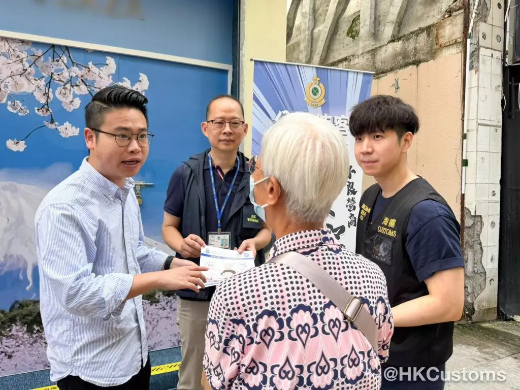 海關採取執法行動,在全港多區包括觀塘、九龍灣、新蒲崗、旺角、長沙灣、葵涌及元朗,突擊搜查8間派對房間。政府新聞網圖片