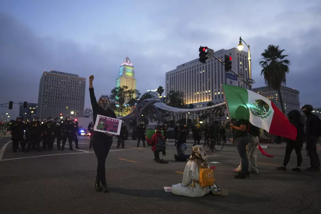 洛杉磯搜捕非法移民觸發的抗議浪潮持續第三日。AP圖片