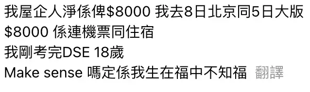 近日,一名18歲考生在網上發文,表示家人資助$8000讓他到北京及大阪旅行,並詢問網友:「合理嗎?定係我身在福中不知福?」帖文隨即引發熱烈討論。
