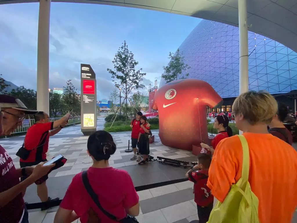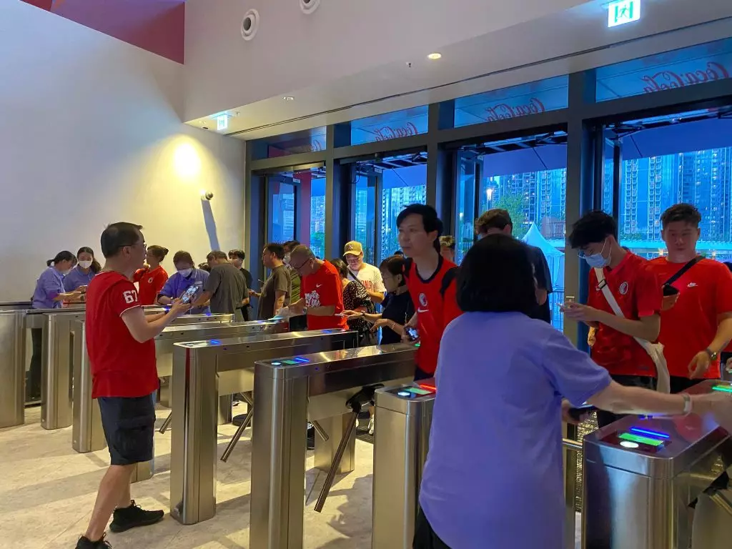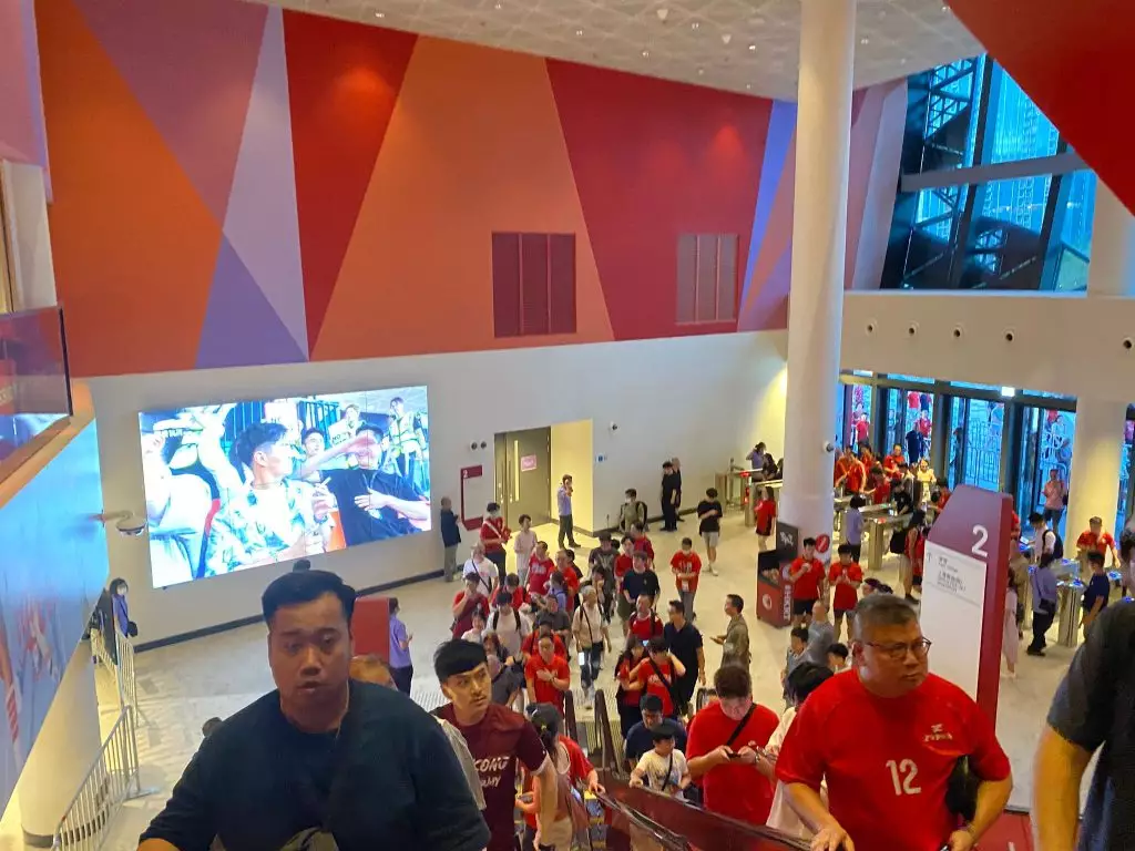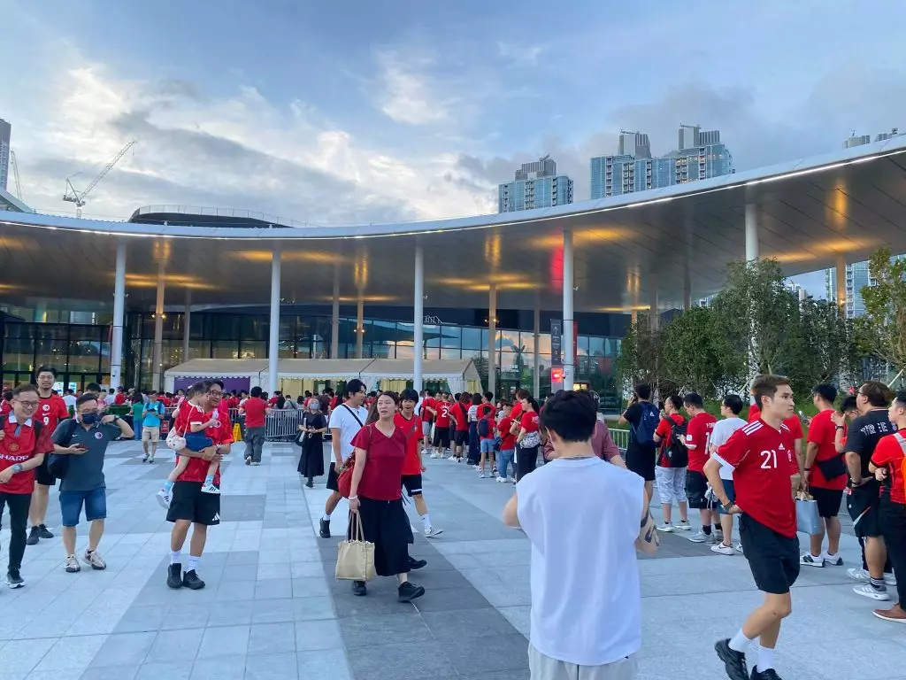 有球迷高唱打氣歌曲和口號,有市民一家大小到場支持港隊,亦有球迷今日特別請假看球賽,相信氣氛會很好。不少球迷經過安檢後,到中央廣場排隊買紀念品。