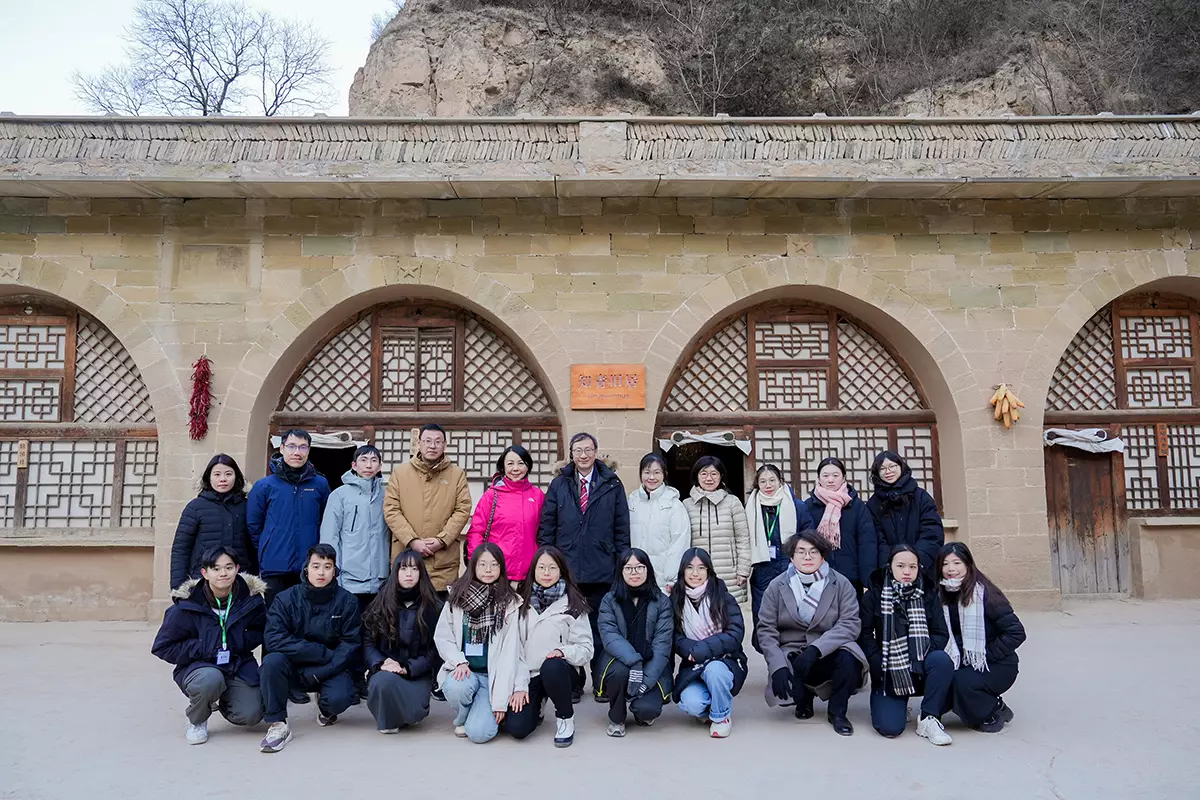 兩校管理層及師生代表在延安大學行政樓外留影。教大圖片