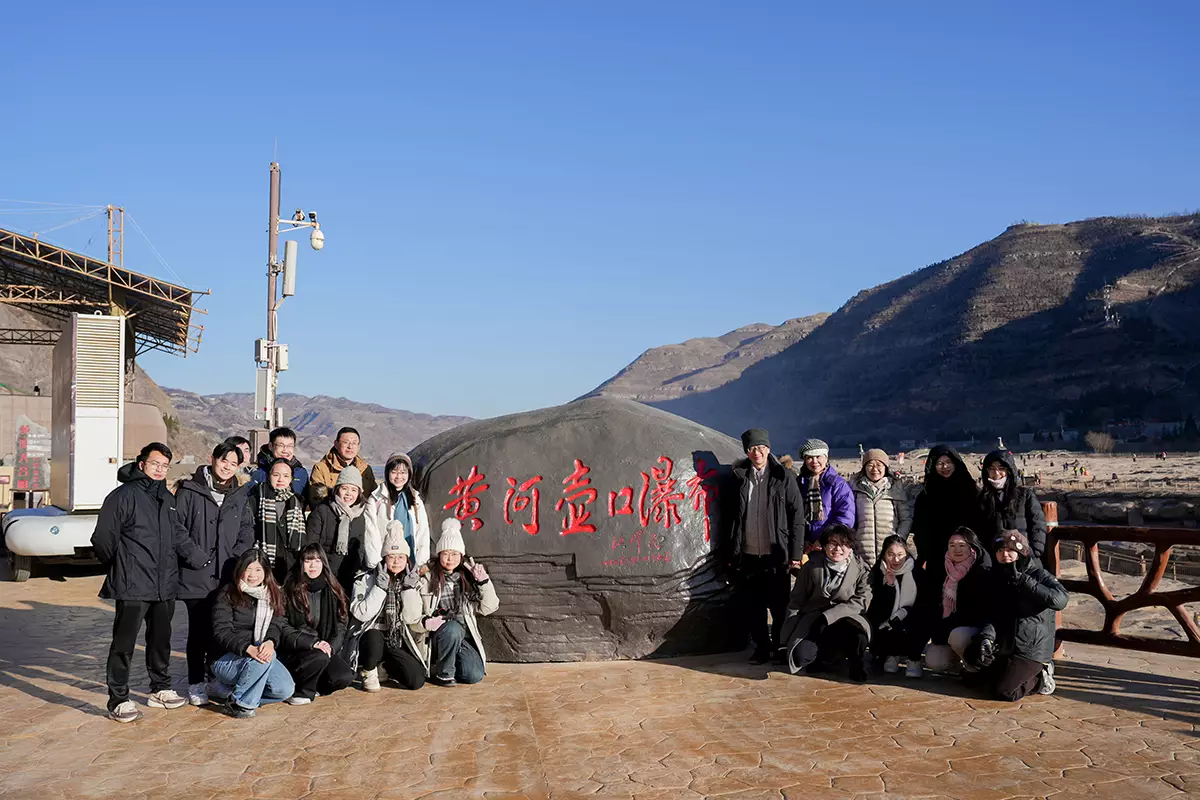 研學團師生在黃河壺口瀑布合照留影。教大圖片