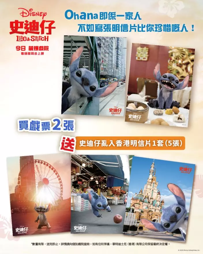 現凡買戲票2張,即送《史迪仔》亂入香港明信片一套(5張),把握機會同家人及朋友一齊二刷三刷!
