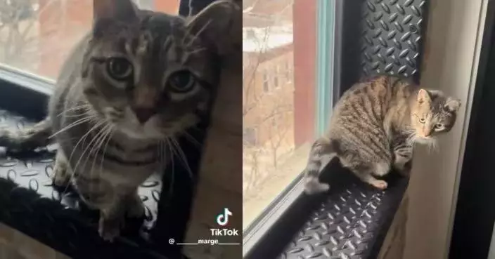國外一名女飼主梅格(Meg Valenti)於TikTok上分享了家中虎斑貓「Pesto」的趣味影片。影片截圖