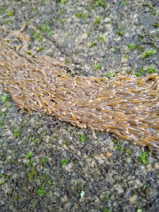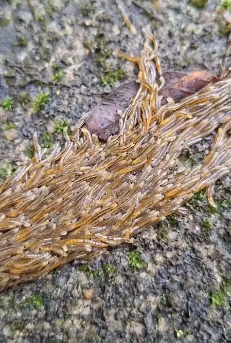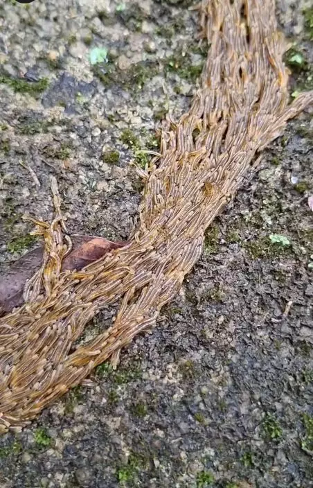 路邊驚現密密麻麻的橘白小蟲繞圈爬行