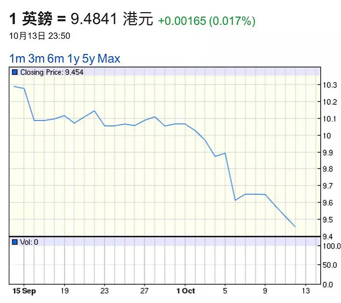 上星期寫文的時候英鎊兌港元仲係9.6691,到周四英鎊收市再跌到9.4841港元,即係一個星期跌咗2. 2%,匯率跌2.2%已經好大件事,因為好多炒外匯孖展的人,只係放低5%按金,英鎊一跌差唔多跌咗一半按金,若然睇好英鎊買入,跌得急孖展按金唔夠,已經要枱錢去補倉。所以我話等英鎊跌到殘去買,主要講俾長線投資者聽,短炒者莫買當頭跌,反而應該係每逢見英鎊反彈就沽貨,食佢2、3 %就走。