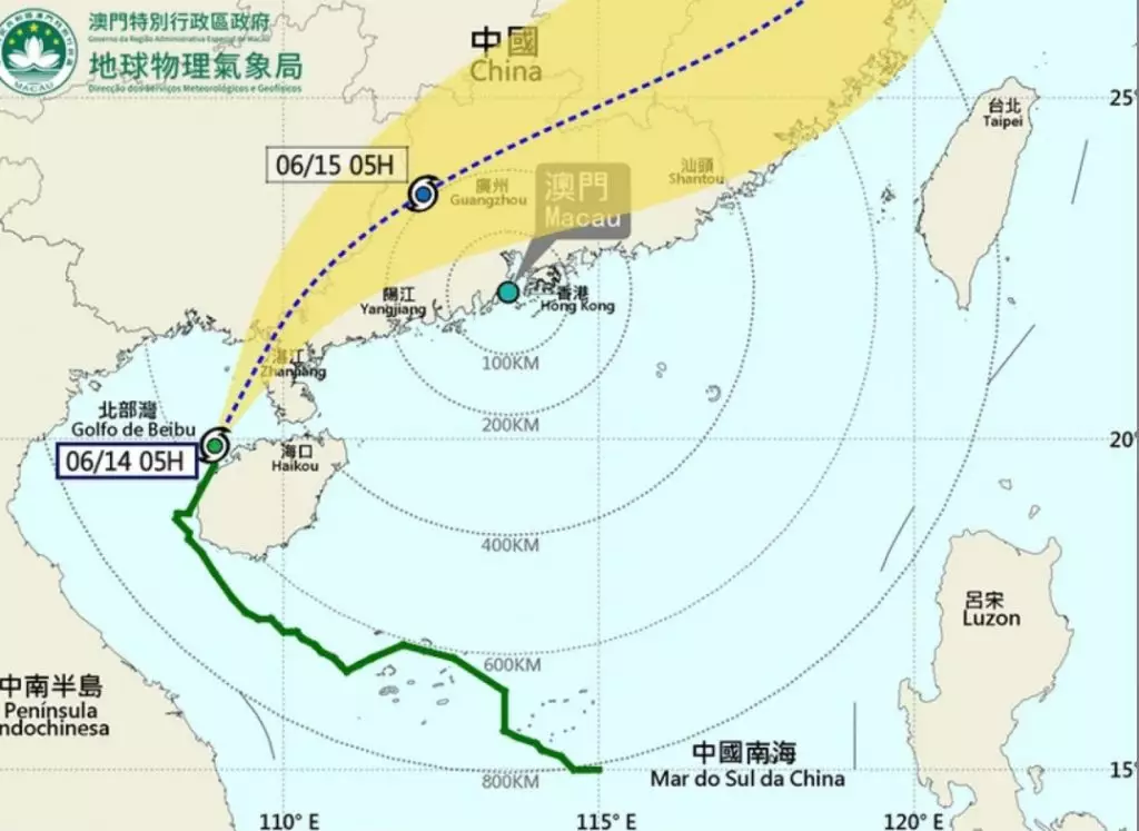 氣象局表示,熱帶氣旋蝴蝶正向東北方向移動,預料日間在雷州半島附近再次登陸後,移向廣東北部內陸,相關的西南氣流將會令澳門風力再次顯著增強。