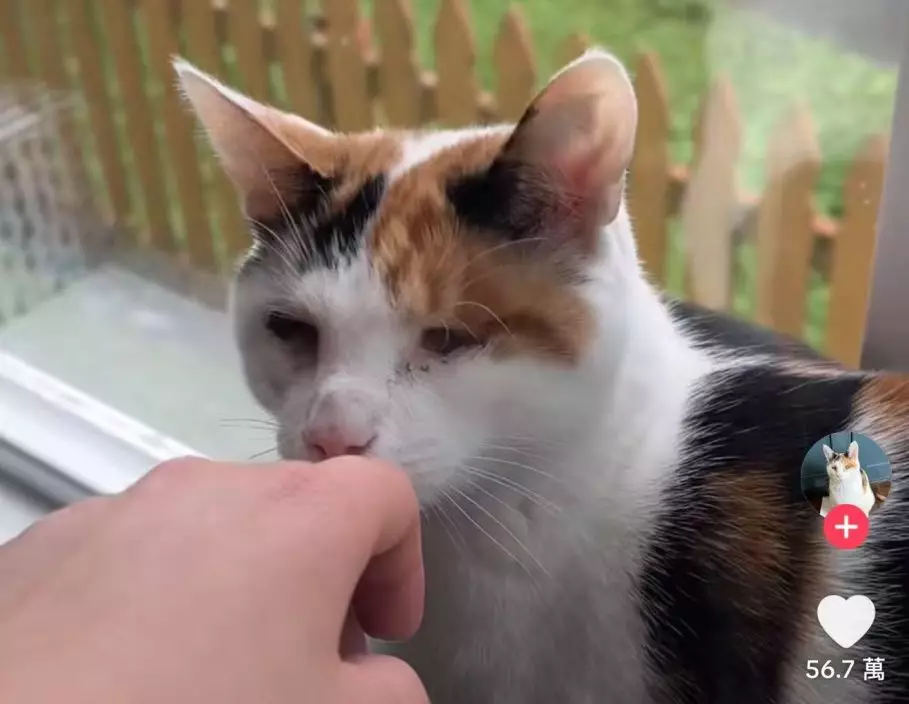 失明三花貓受困窗台