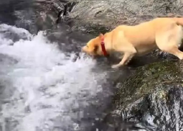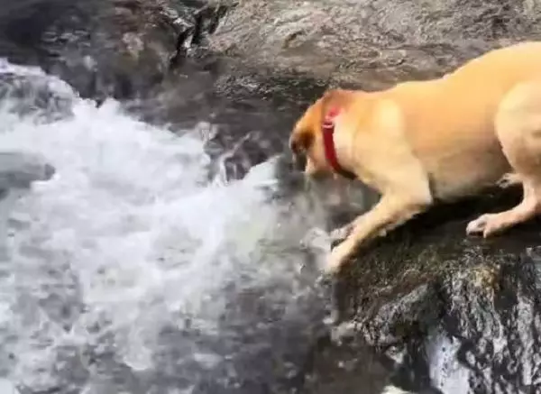 得意狗狗隨飼主前往瀑布消暑時,竟站在岸邊認真「咬水」逗笑網友:傷害為零!