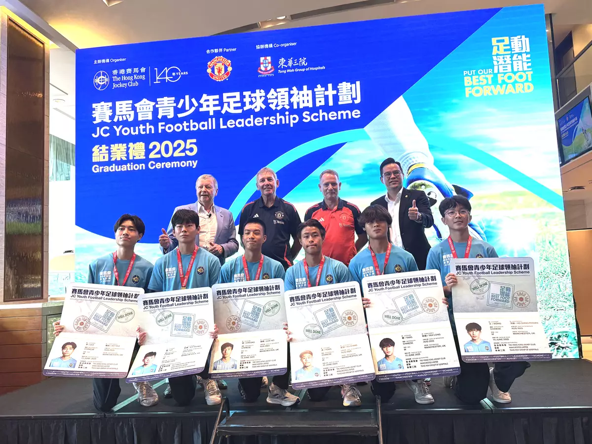 香港賽馬會(馬會)舉行第十屆「賽馬會青少年足球領袖計劃」(「計劃」)結業禮,並公佈獲選前往英國曼徹斯特交流的六位優異學員名單。他們將參加一連串由曼聯及其基金會安排的活動,了解當地足球文化及參與社區足球服務。