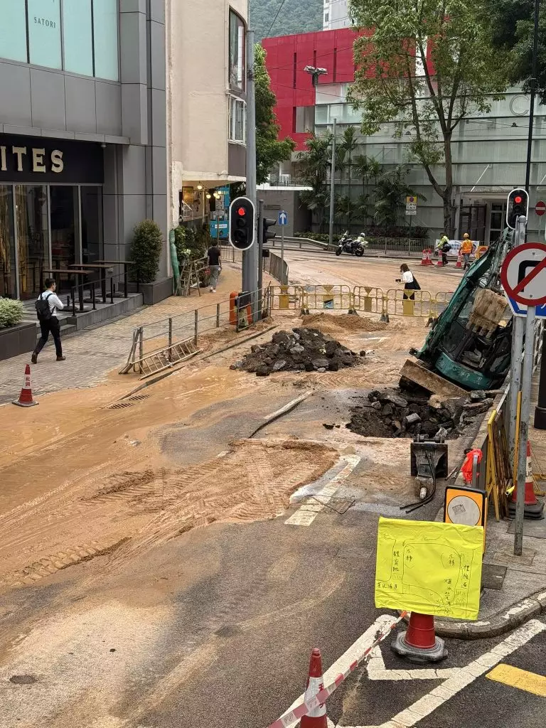 水務署表示,涉事水管為一條直徑 300毫米鹹水供水管,用作供應沖廁水予跑馬地一帶。水務署工程團隊正全力搶修,以盡快完成相關水管維修工作及重開受影響的道路。