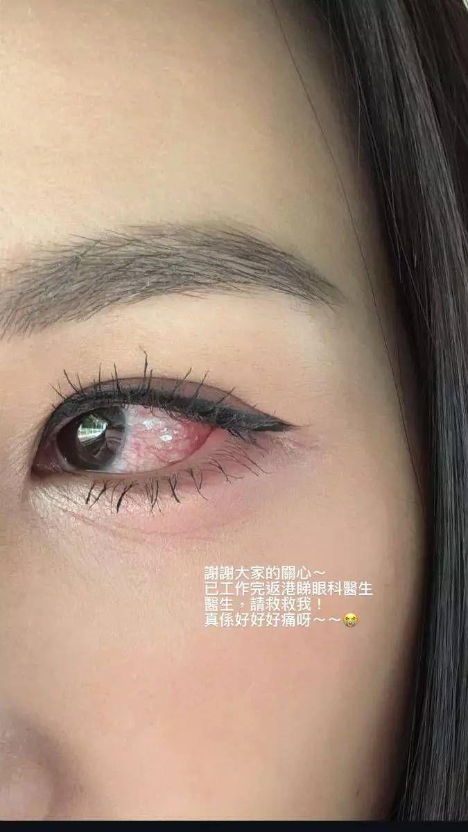 雖然左眼又痕又痛,但敬業的高Ling依然繼續開工,直到昨日(6月15日)她終於完成工作回港,並馬上去求醫接受治療,她在IG Story貼出自拍,可見左眼的狀態明顯比早前更嚴重,更爆出大量紅筋,令她忍不住留言求救:「醫生,請救救我!真係好好好痛呀~」網民都紛紛表示心痛。