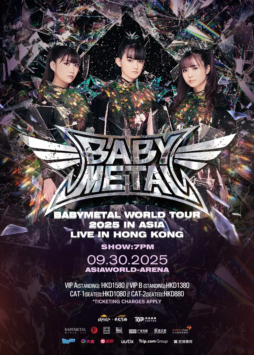 日本重金屬偶像女團 BABYMETAL出道15年,憑獨特反差魅力迷盡全球樂迷,多年來參與不少國際性音樂盛會,更多次舉辦世界巡迴演唱會,她們剛完成本年度巡演的英國及歐洲站演出,6月便展開《BABYMETAL NORTH AMERICA 2025 TOUR》,於今年夏天走遍北美地區,近日還宣布下半年於亞洲開啟跨年巡演,9月先在首爾起跑,緊接於9月底再襲香港,鐵定9月30日登上亞洲博覽館Asia World-Arena舞台,是組合相隔兩年重臨香港,之後三人將會再到台北、新加坡、吉隆坡等亞洲城市開騷。