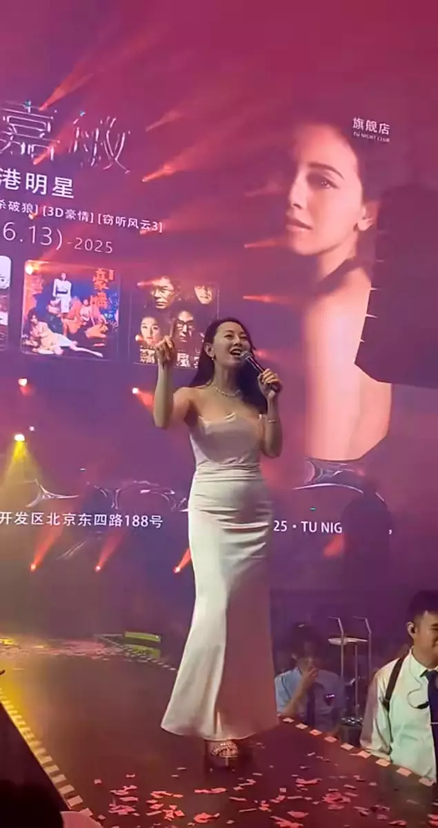 40歲「性感女星」袁嘉敏近年活躍於內地商演市場,頻頻北上登台,人氣依然高企。不過,近日網上流傳一段她在深圳表演的片段,不少網民發現她身材明顯走樣,腹部微凸,甚至有人留言問:「係咪有咗?」引發熱議。