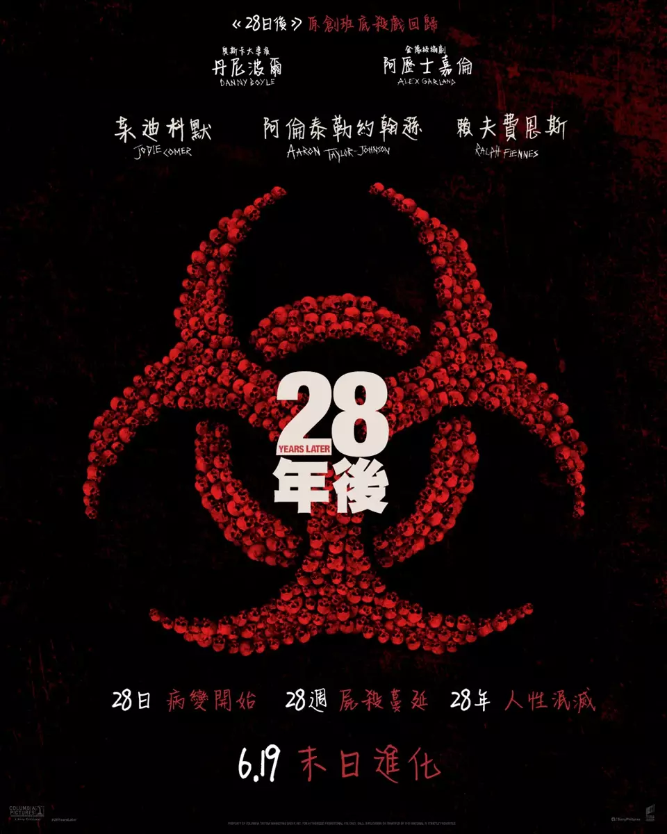 Sony Pictures榮譽發行災難喪屍電影《28年後》(28 Years Later),由導演丹尼波爾(Danny Boyle)、編劇阿歷士嘉倫(Alex Garland)再次聯手,延續《28日後》、《28週後》經典系列,推出第三集。