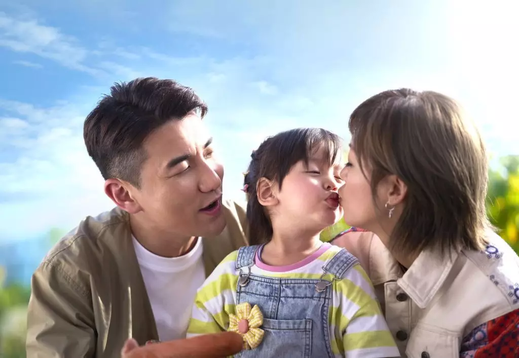 洪永城與太太梁諾妍及大女Amber,首次一家三口拍廣告。