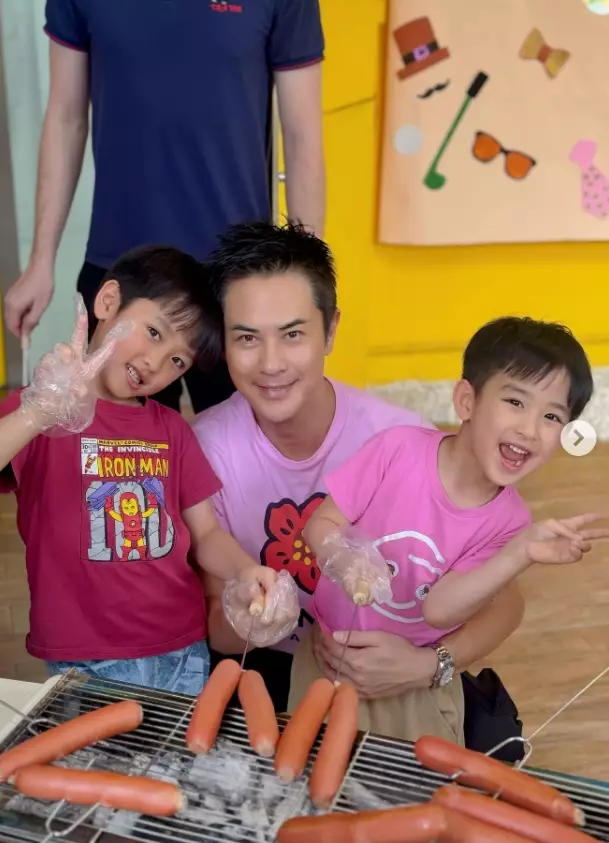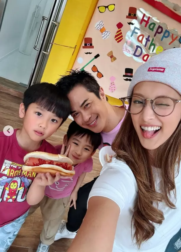 鄭嘉穎與陳凱琳(Grace)婚後育有三子,分別是6歲的Rafael、4歲的Yannick及2歲的Carlos。今日他在IG分享與兒子的互動相片,並留言:「做老竇⋯平時雖然攰啲,不過完全值得,今個父親節,爽呀!」胡杏兒與老公李乘德育有三子,胡杏兒在社交平台貼出Phil與兒子們的合照,並甜蜜祝福:「To our most loving daddy, happy Father’s Day!!」