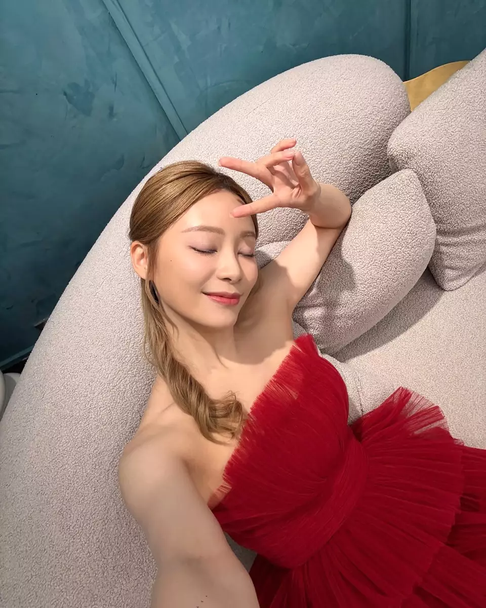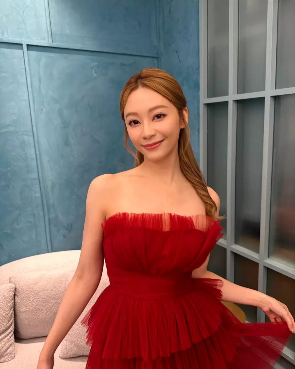 相中的葉蒨文身穿一襲紅色露肩短裙,輕輕拎起裙擺的她,宛如童話故事中的小公主,配上招牌甜美笑容,電力十足!裙子的剪裁更完美展現她的纖腰及白滑長腿,性感得來又不失優雅,難怪帖文一出即狂呃Like,粉絲紛紛留言大讚:「Sophie真係愈來愈靚!」、「呢個造型真係殺死人!」、「笑容甜到漏,睇到個心融咗~」