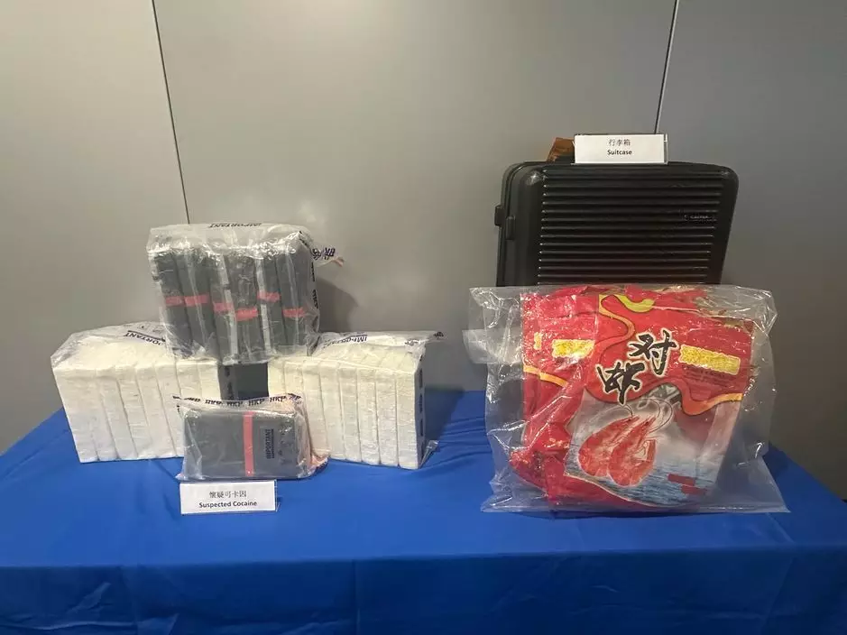 當日上午,警方探員在香港國際機場入境大堂截查一名由美國三藩市抵港的非華裔男子,並在海關人員協助下檢查其行李,搜出23塊疑似可卡因磚,每塊重約1公斤。該男子隨即被警方拘捕。