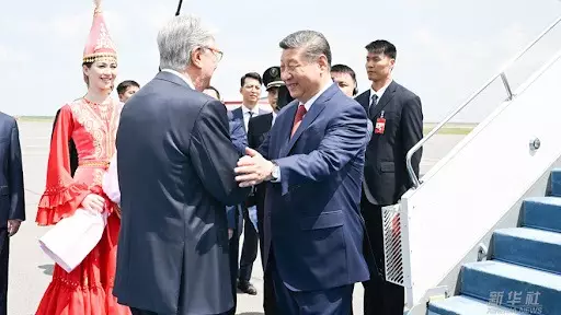 國家主席習近平在阿斯塔納出席第二屆中國-中亞峰會期間,與塔吉克總統拉赫蒙會面。