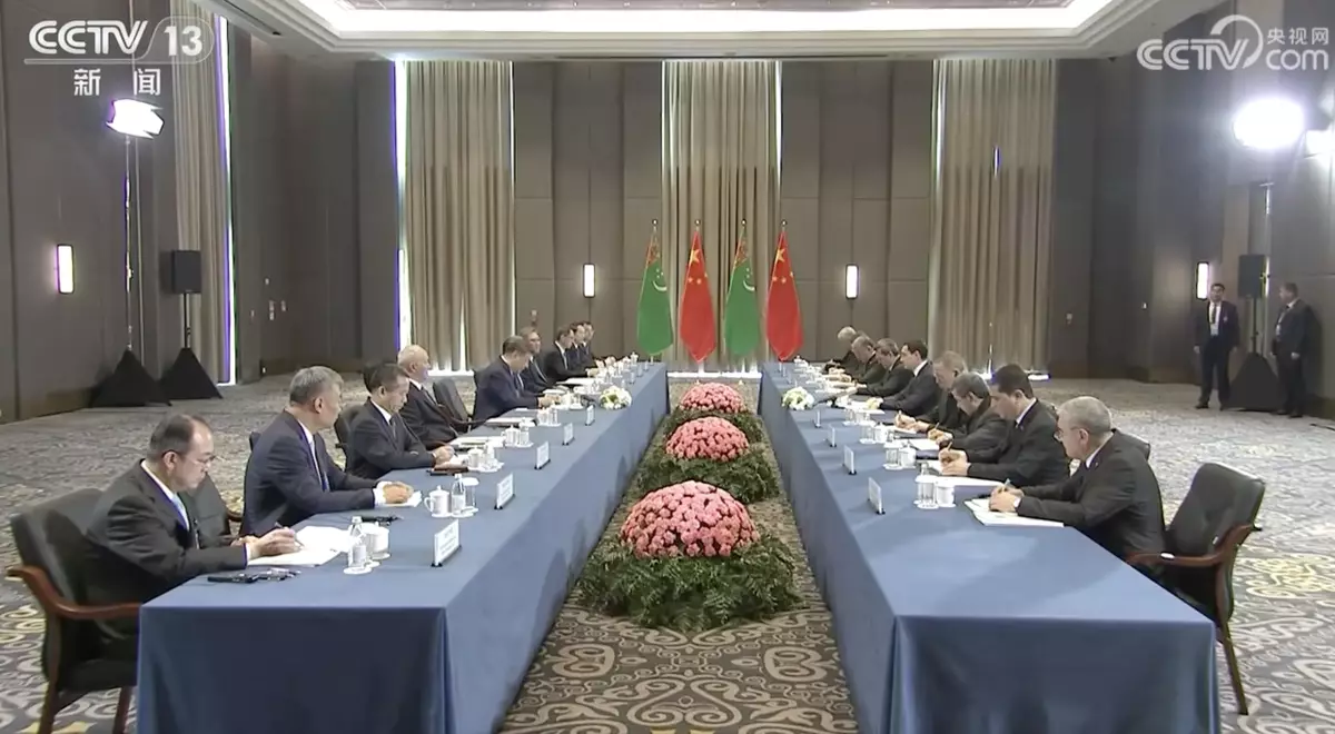 國家主席習近平與土庫曼總統別爾德穆哈梅多夫會面。央視網截圖