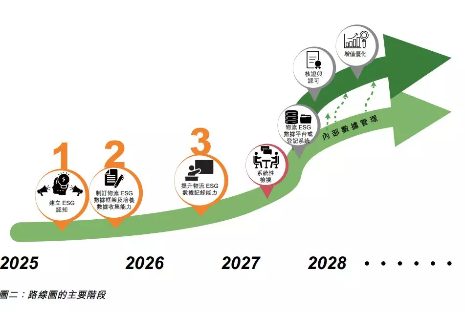 《路線圖》第一階段包括提高物流中小企業對ESG原則及國際ESG要求的認知;第二階段包括加強物流中小企業收集和記錄物流ESG數據的能力;第三階段目的在於協助物流中小企業就編製ESG報告做好準備,預計會在ESG下一發展階段成為國際要求。