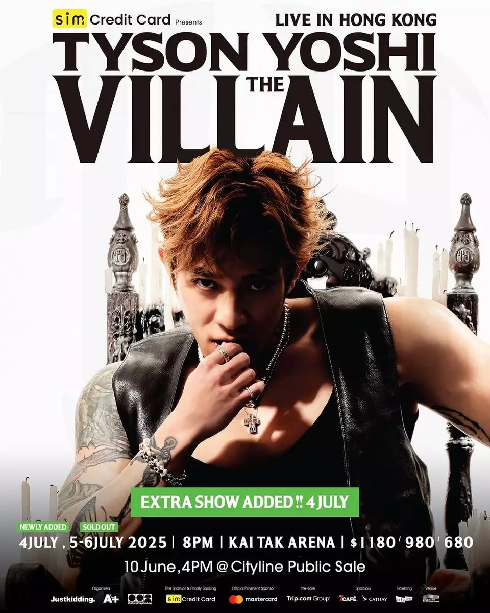 Tyson Yoshi宣佈將於7在啟德體藝館,舉行《Tyson Yoshi The Villain Live in Hong Kong》。