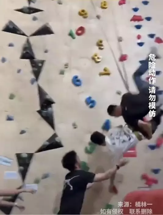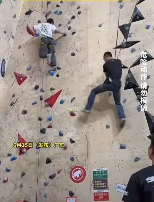 綜合內媒報導,廣州一處攀岩場6月15日發生一宗驚險意外。當日一名男子疑因疏忽未繫上安全繩便開始攀爬,結果中途疑因體力不支不慎從岩壁上滑落,險些墜落到地面。