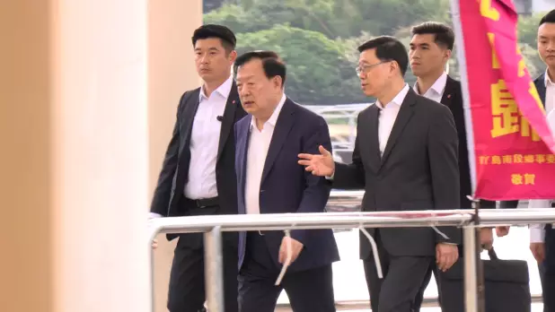 中央港澳辦主任、國務院港澳辦主任夏寶龍第三日在港考察調研,下午5時許乘水上的士抵達南丫島,陪同他的包括行政長官李家超、中聯辦主任周霽等。