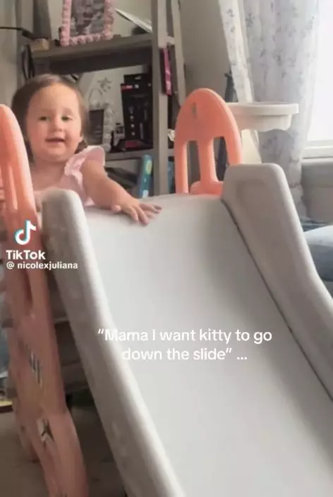 美國2歲女童想同愛貓玩耍,轉身拿出亡貓骨灰盒瀡滑梯,天真舉動背後藏催淚故事。