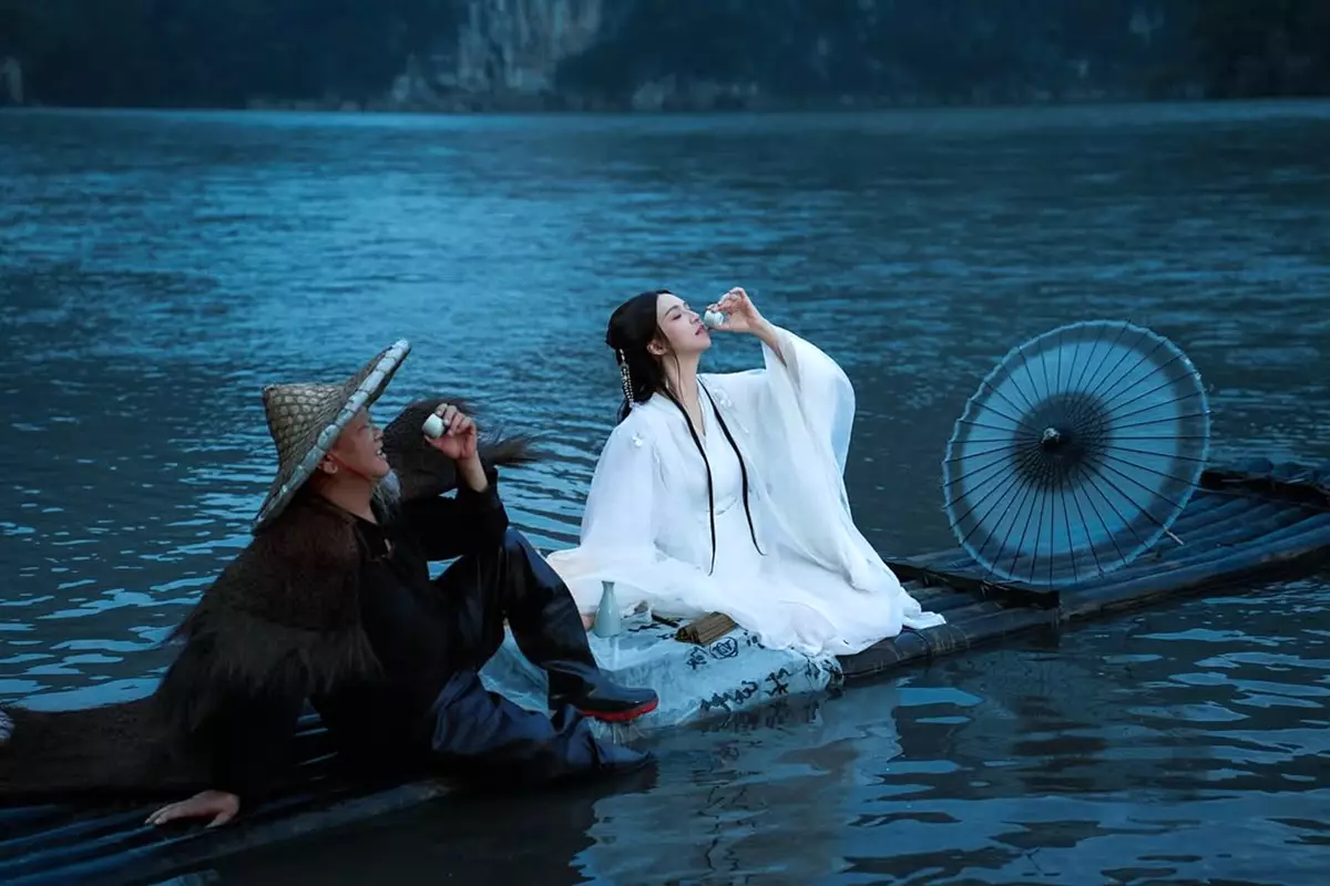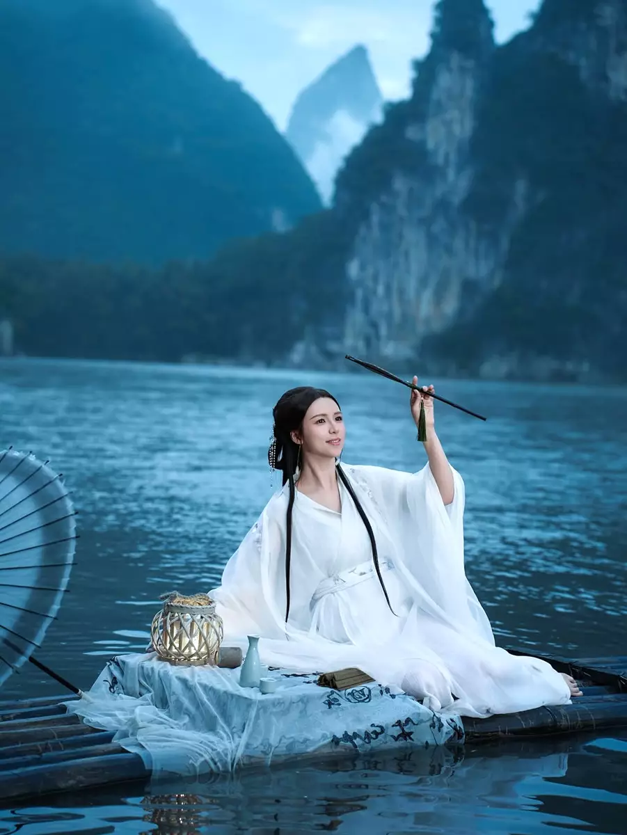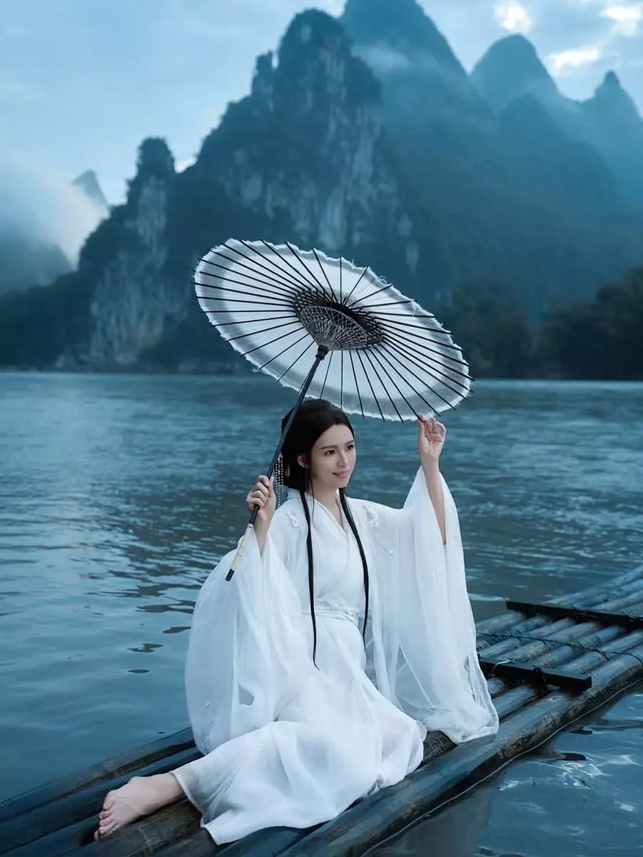 之後阿雪再連環出Post,分享在獨木舟上撐傘、身穿白紗的唯美相片,充滿詩情畫意。網民紛紛留言大讚:「阿雪著民族服真係好有仙氣!」