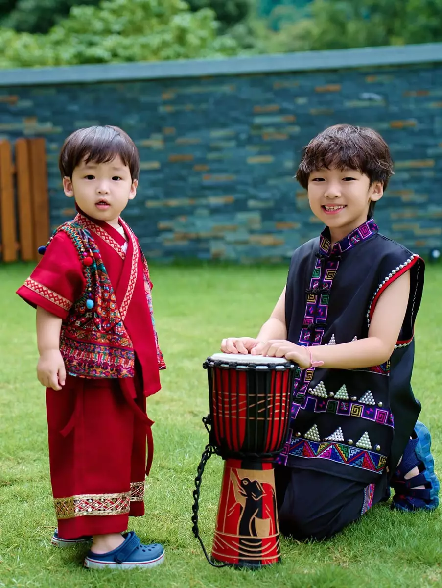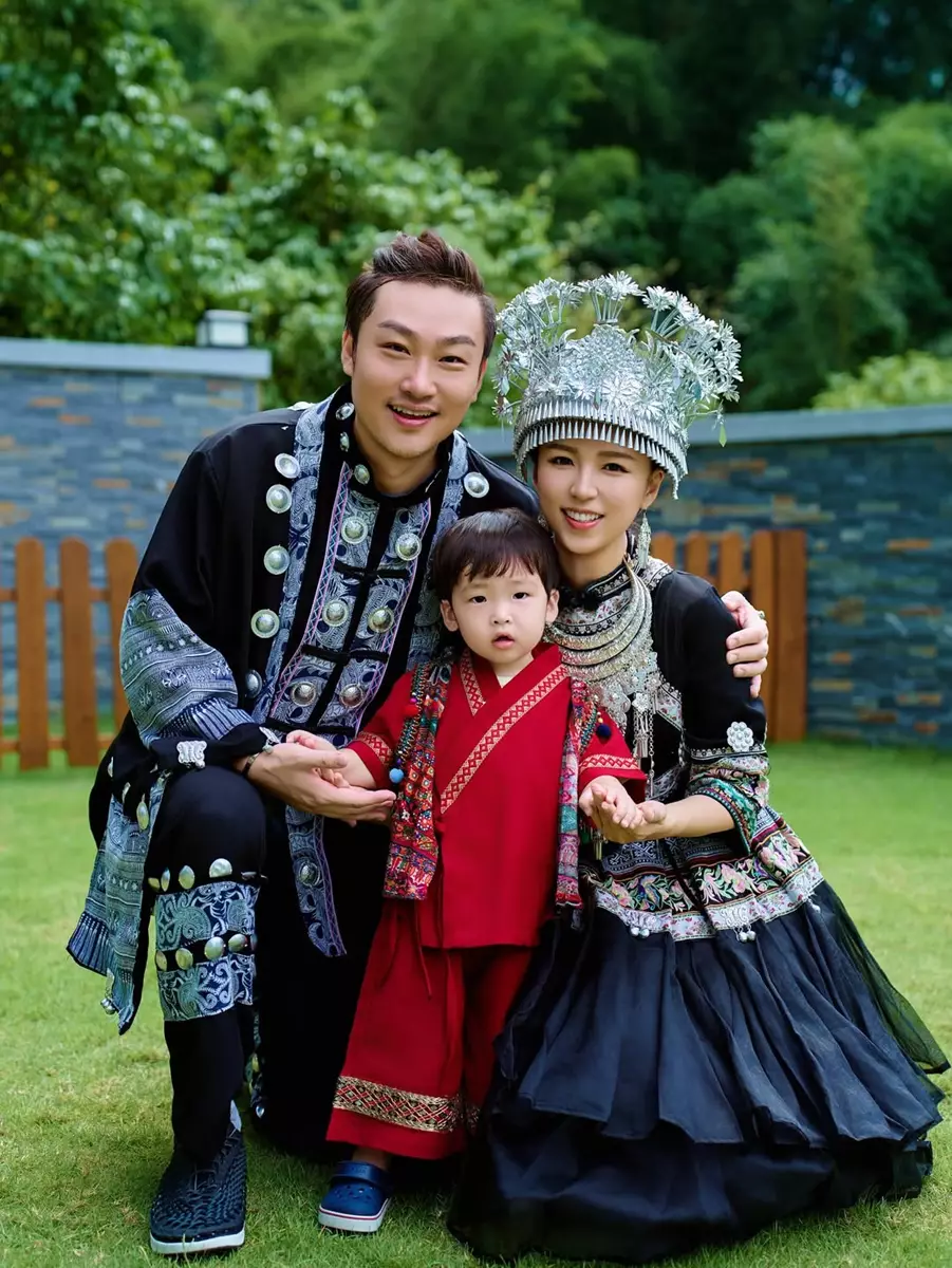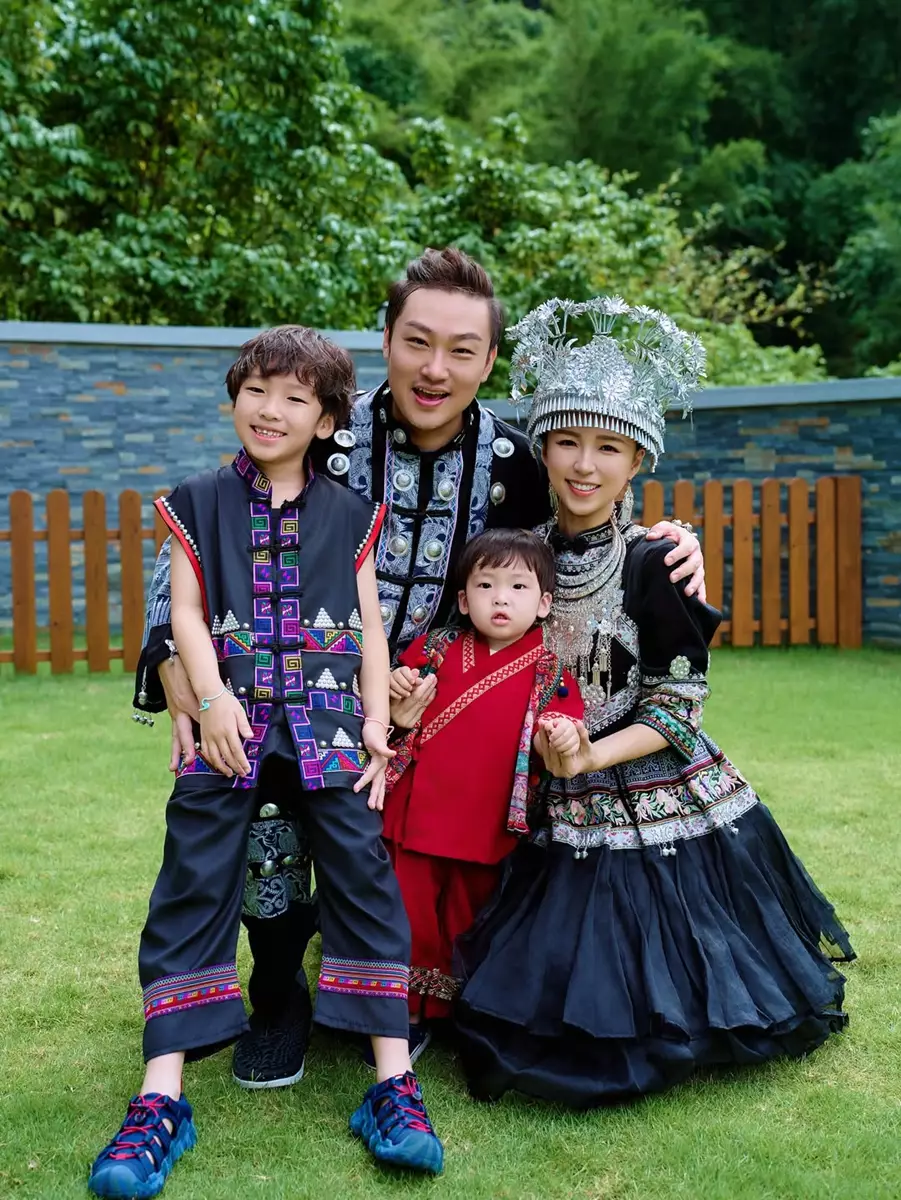 一家四口齊齊換上民族服裝