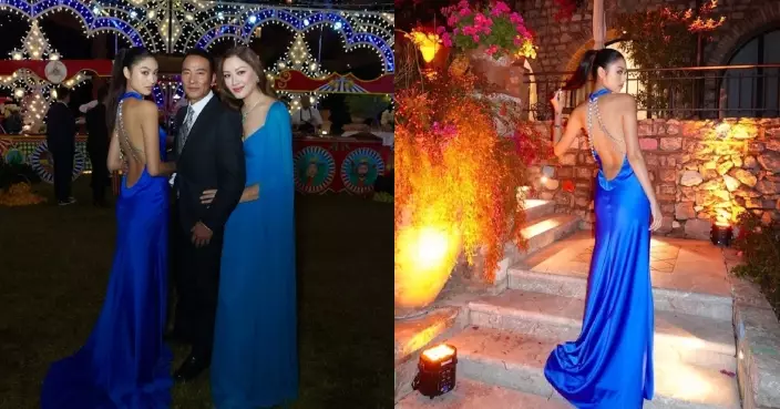 任達華愛女任晴佳自設計晚裝亮相 藍色露背造型驚艷全場