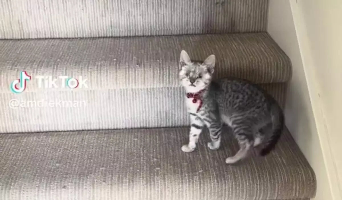 國外一隻小貓雙眼因嚴重感染被摘除仍堅強成長,成功學會靠聲音辨別同伴位置以此獲取安全感。