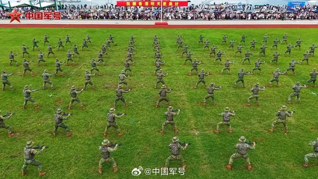 新華社報道,昂船洲營區早上舉行升國旗儀式。部隊隨後進行課目表演,展示軍事技能。在武器裝備展示區,很多市民體驗槍械、觀摩車輛、登上艦艇,向官兵學習打繩結、進行模擬射擊。至於石崗營區,有直升機飛行表演,飛行員熟練駕駛戰機進行俯衝、躍升等動作,不少市民在表演結束後,走到空軍裝備展示區,在直升機前打卡留念。