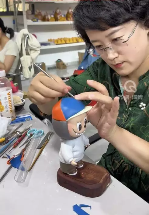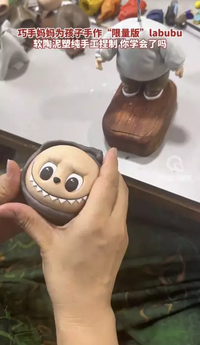 山東巧手媽用黏土為兒子捏製Labubu。影片截圖
