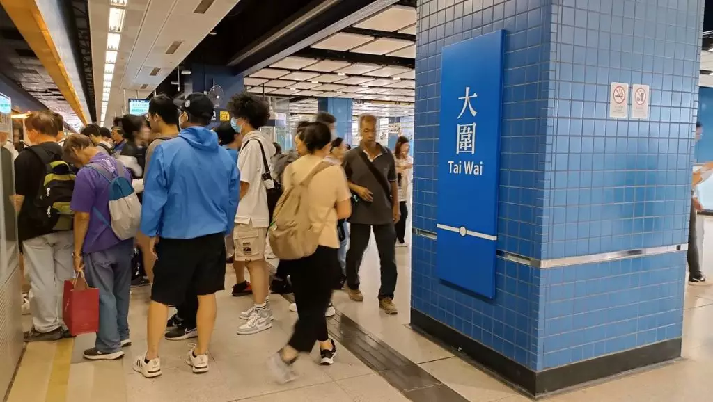 港鐵表示,由於大圍站附近信號設備故障,屯馬綫來往屯門站及烏溪沙站的行車時間預計需要額外5至8分鐘。