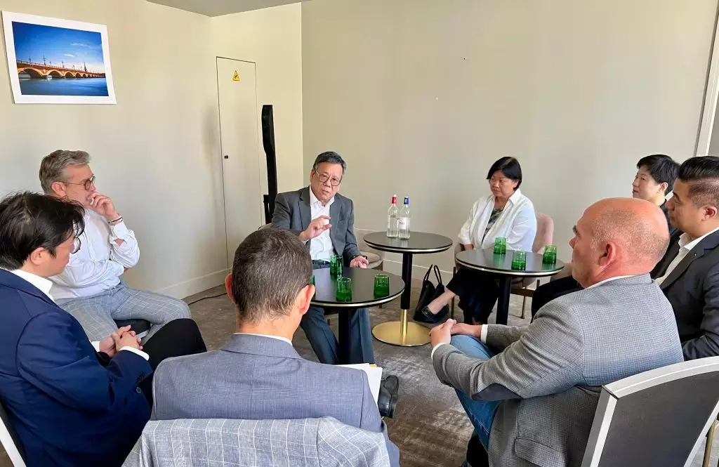 丘應樺六月二十日(法國時間)與波爾多的葡萄酒、干邑和雅文邑業界代表舉行商業圓桌會議和會面,就酒業的最新發展交換意見,並促進合作以推動葡萄酒和烈酒貿易。 政府新聞處圖片