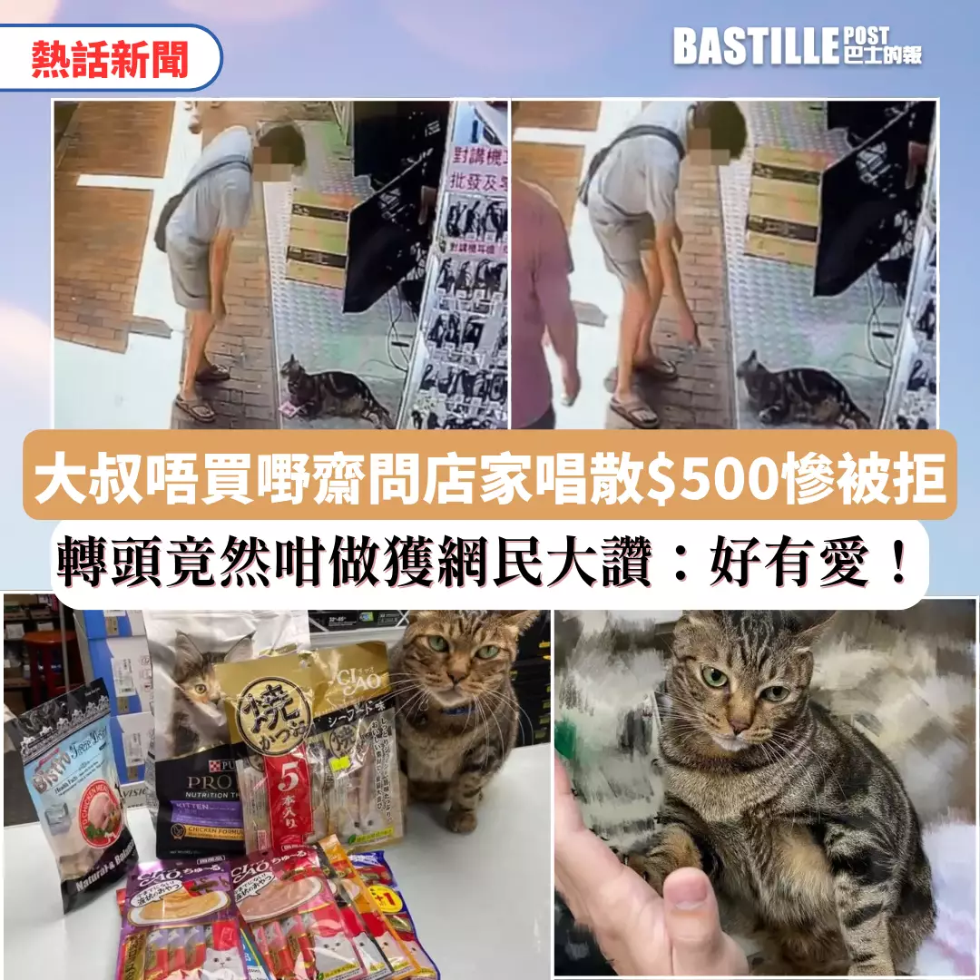 一位短褲大叔早前在深水埗鴨寮街一間店鋪玩貓,期間問店主唱散500元被拒,之後竟然做了一件讓網民「諗唔到會咁樣發生」的好事,獲網民一致大讚。