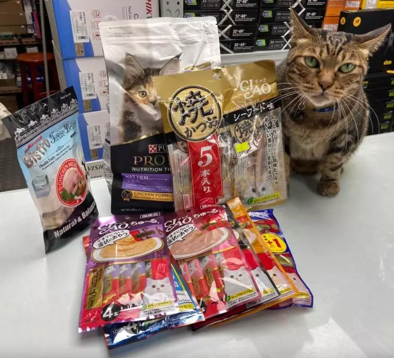 另有一位網民似將涉事貓的相片PO上留言處,只見貓仔身旁有一大堆零食,似是店主已用大叔給的兩百大元,買了貓零食給貓主子。算是給大叔及網民們一個交代!