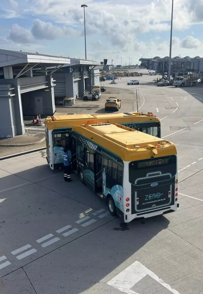 機管局表示, 22日下午約4時20分,兩架沒載客的機場員工無人駕駛巴士於禁區發生輕微碰撞,事件中無人受傷,機場運作不受影響。據初步調查,事發時兩架巴士的安全系統均發揮作用,把車速控制在極慢速度,即大約時速5公里以下,並將碰撞減至非常輕微。