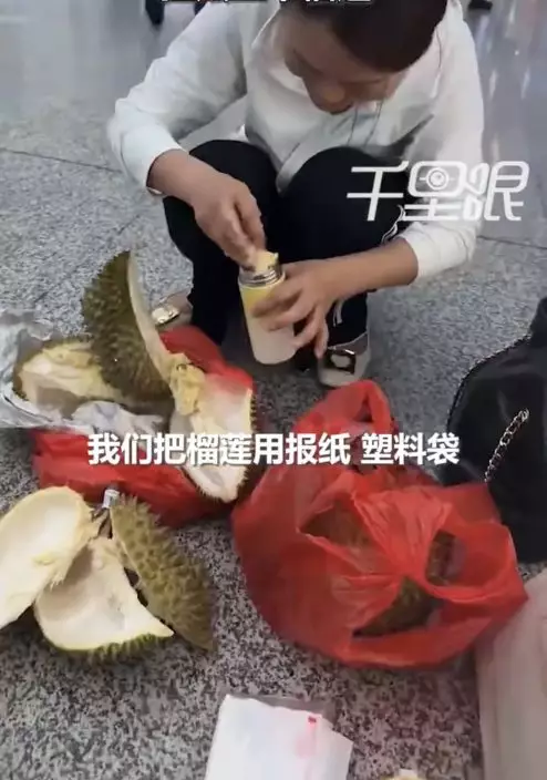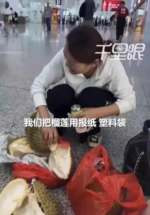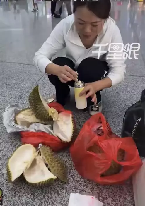 內地女旅行時花400元人民幣買榴槤準備帶回家,怎料被機場職員以味道濃烈為由拒絕托運,遂豪氣請同事及現場路人進食。