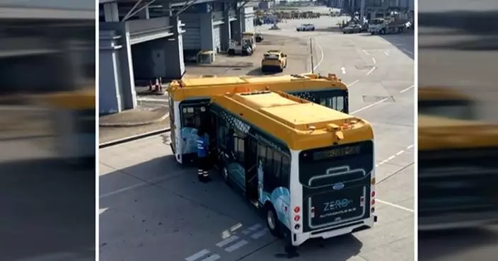 機場禁區星期日有無人駕駛巴士相撞。有線新聞影片截圖