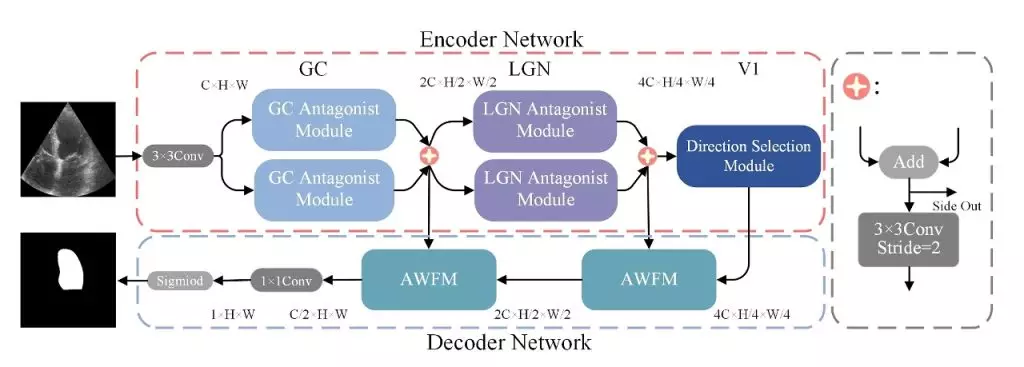 在臨床實踐中,心臟超聲需要實時分析能力,在醫療場景中使用便攜設備進行,以監測心臟功能,協助臨床治療決策。研究團隊開發的「BLENet」人工智能模型,從生物視覺系統獲取靈感,採用了模仿生物視覺處理機制的創新設計,並針對臨床便攜設備進行優化,使其能在空間受限的環境中高效運行。