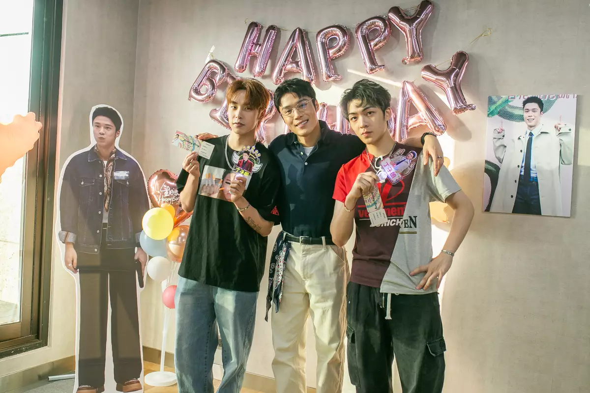 好友余宗遙及文佐匡驚喜現身與丁子朗一同慶祝。