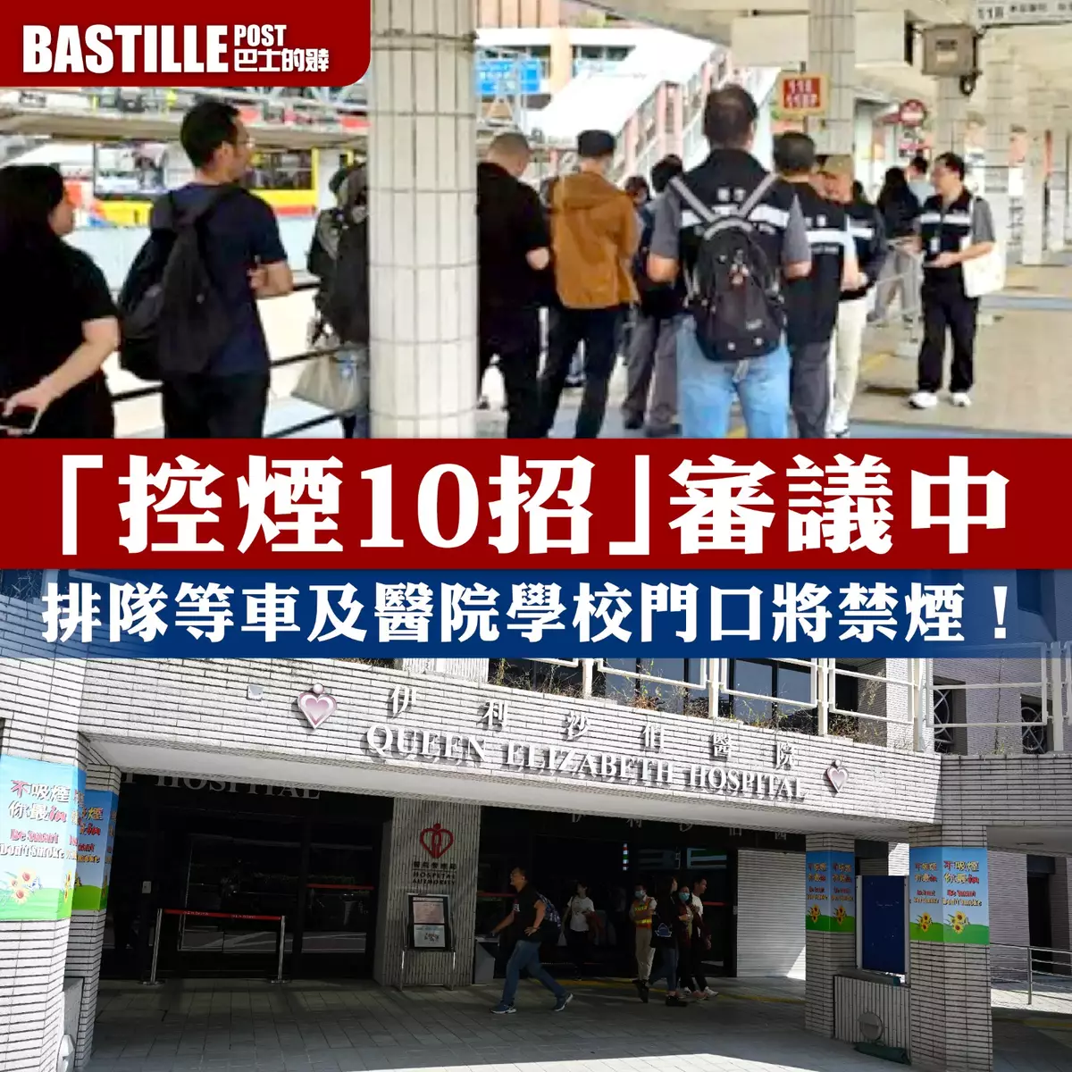 立法會星期二(6月24日)續審議政府「控煙10招」修例草案,包括禁止排隊輪候公共交通工具時吸煙、擴大法定禁煙區至指定處所如幼兒中心、院舍、學校、醫院、指明診所及健康中心的專用出入口3米範圍內的公眾地方等,以進一步減低市民受二手煙禍害。有議員關注,修例並沒包括食肆外排隊輪候買外賣時,人群中有人吸煙的情況。醫衞局指,政府會用一個循序漸進方法,首先做好市民關心的「痛點」,即公共交通交匯處排隊問題先做好。