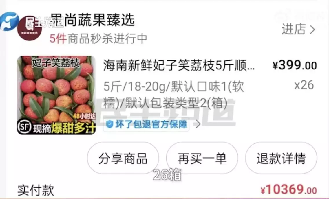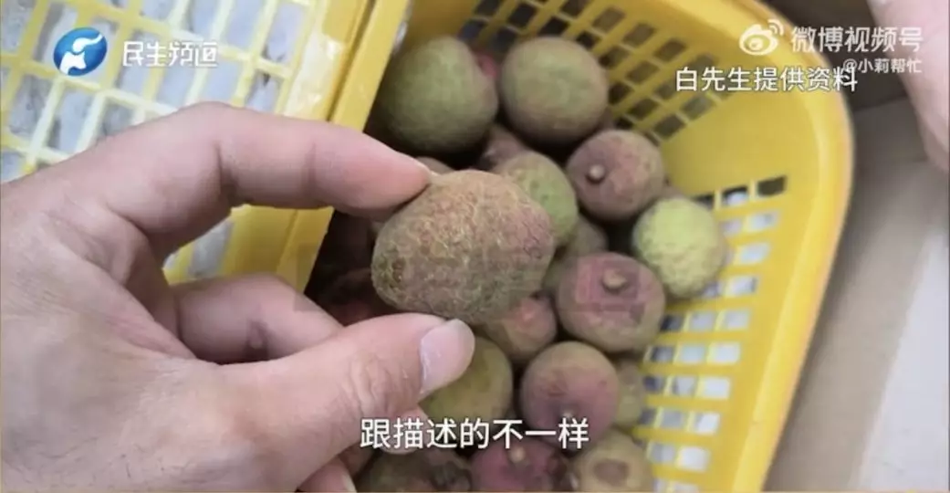 翌日,白先生發現訂單時見商家尚未發貨立即申請退款,結果遭商家拒絕。白先生知道兒子出於報復,但收到貨物時卻哭笑不得。他發現,自己所收到的荔枝並非「妃子笑」,而是價格較低的次級「桂花香」荔枝。正品「妃子笑」表皮應帶刺,而該荔枝表面平滑,與「妃子笑」外觀明顯不同,1斤的價格差了8倍多。白先生懷疑遭遇消費陷阱,於是全程拍攝開箱過程作為證據,惟商家則堅稱訂單內容為26箱「桂花香」,雙方爭議不斷。