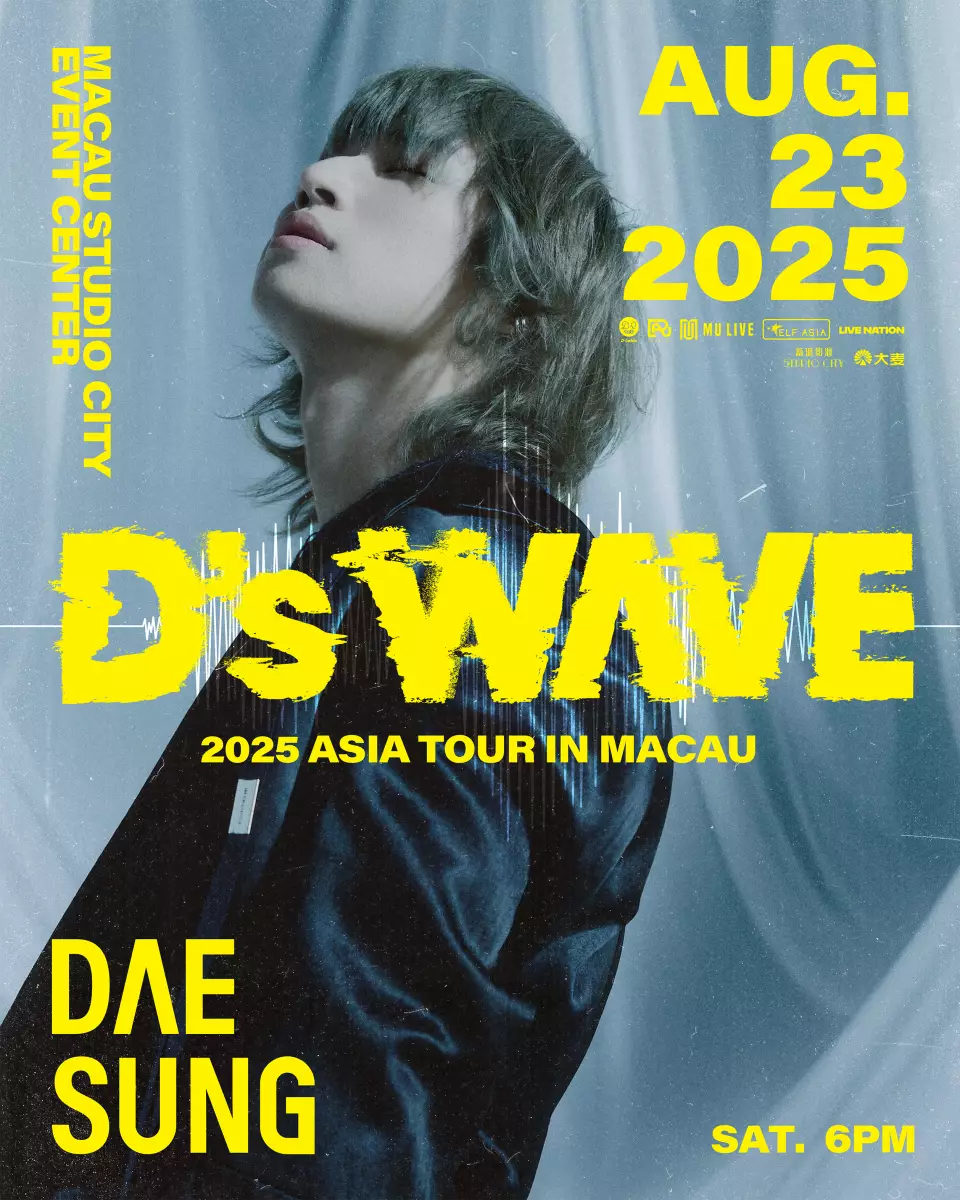 韓國天團BIGBANG主唱大聲(DAESUNG)早前已在首爾場順利為其個人亞洲巡迴演唱會「D's WAVE」揭幕,而他亦即將於8月再次登陸澳門!《DAESUNG 2025 ASIA TOUR: D's WAVEIN MACAU》將於8月23日(星期六)假澳門新濠影滙綜藝館舉行。憑藉他的多元音樂風格與獨有舞台魅力,大聲定將與澳門粉絲延續美麗的夏日回憶,再次和大家一起創造難忘的盛夏之夜,你準備好了嗎?